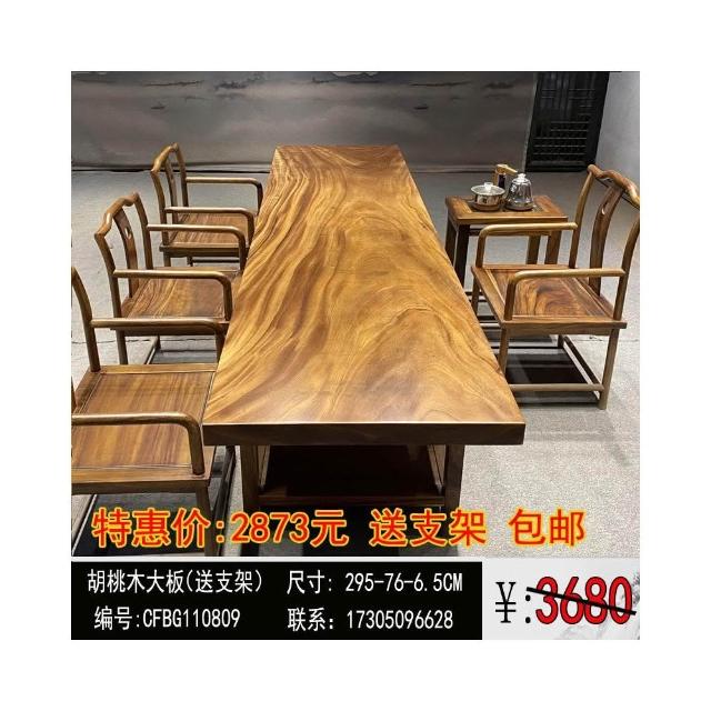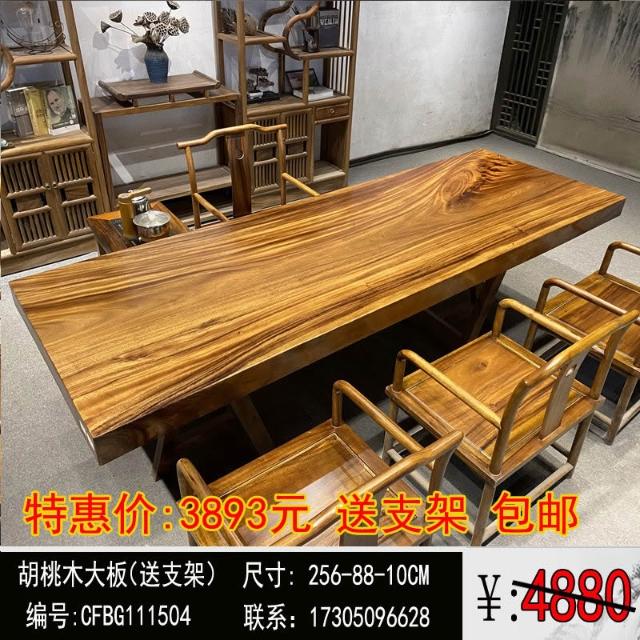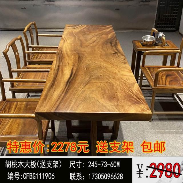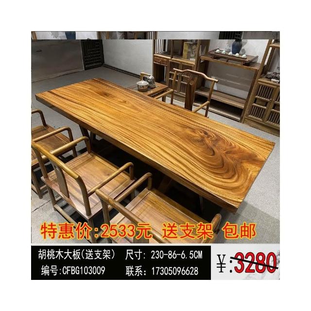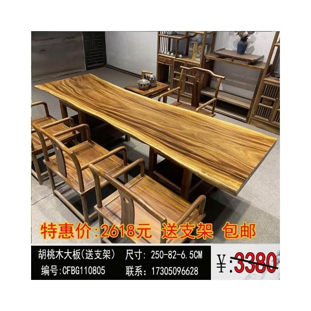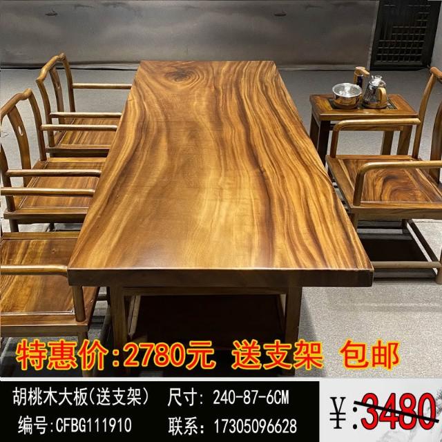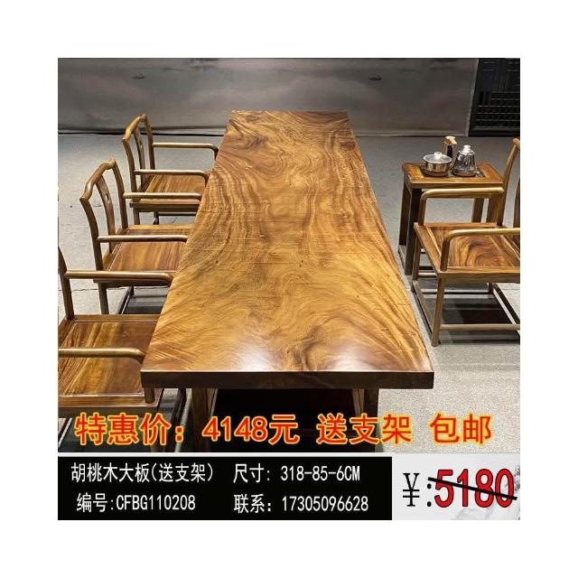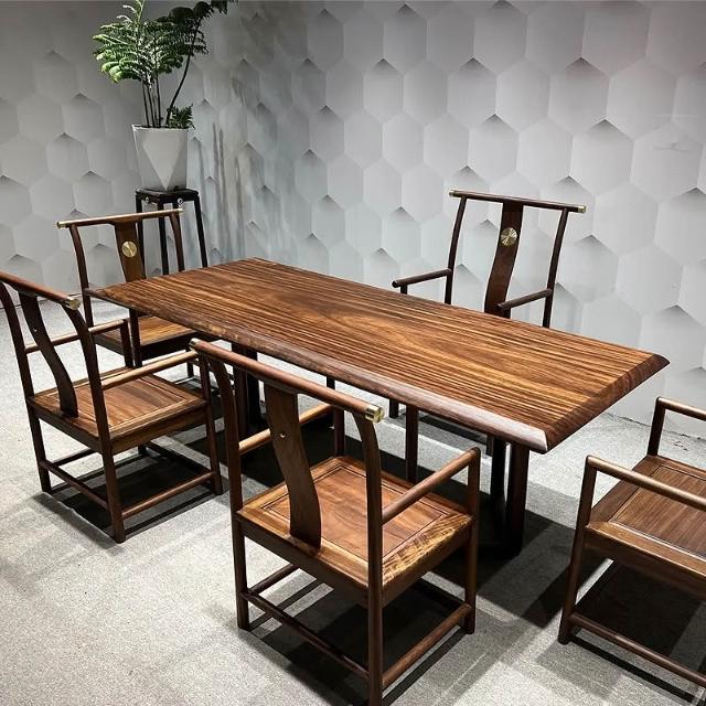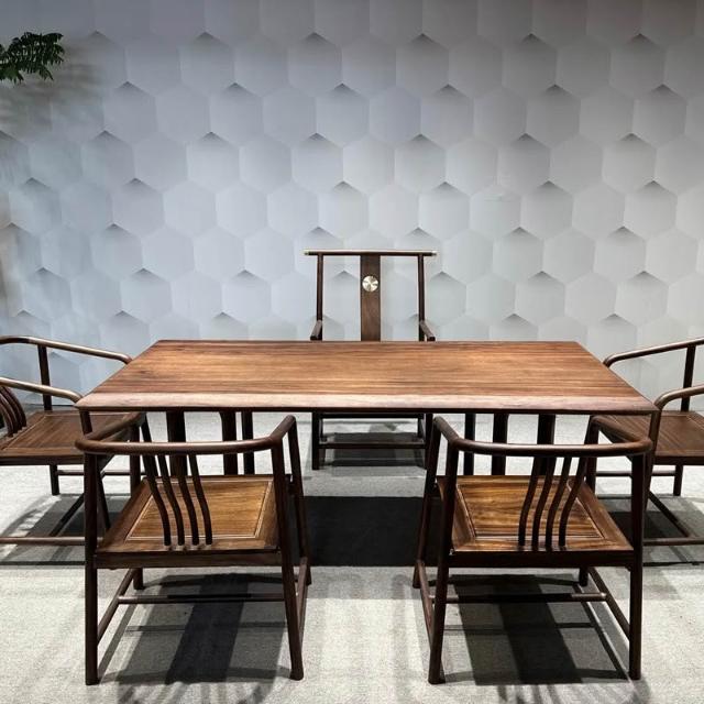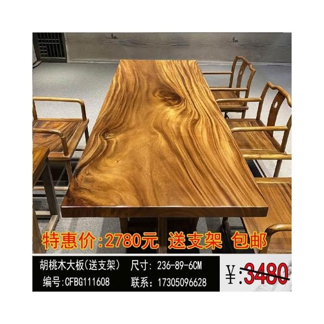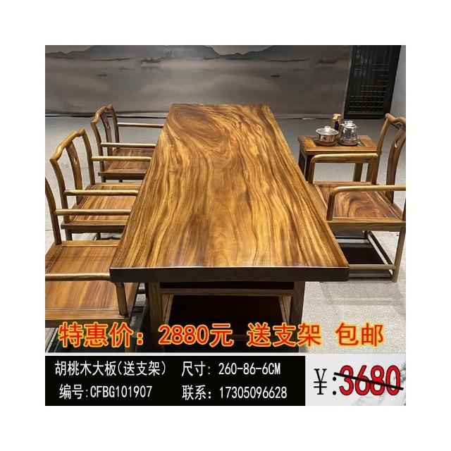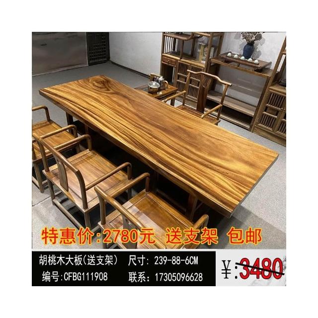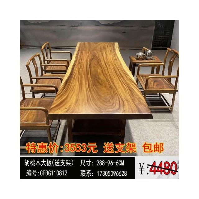 胡桃木大板茶桌實木家用餐桌原木辦公桌新中式桌椅組合簡約現代