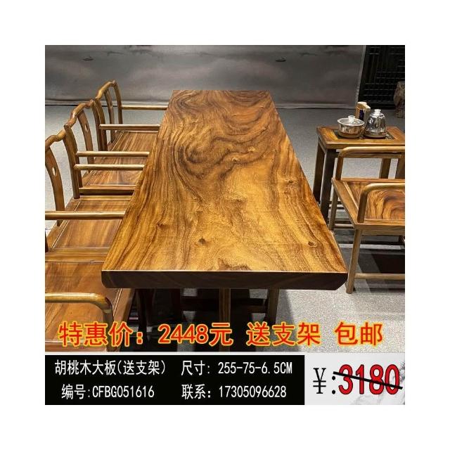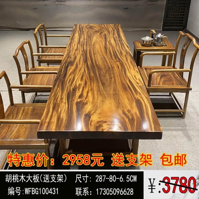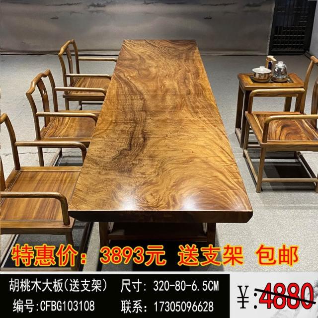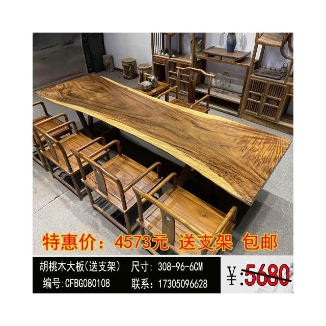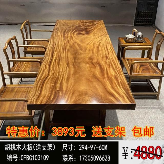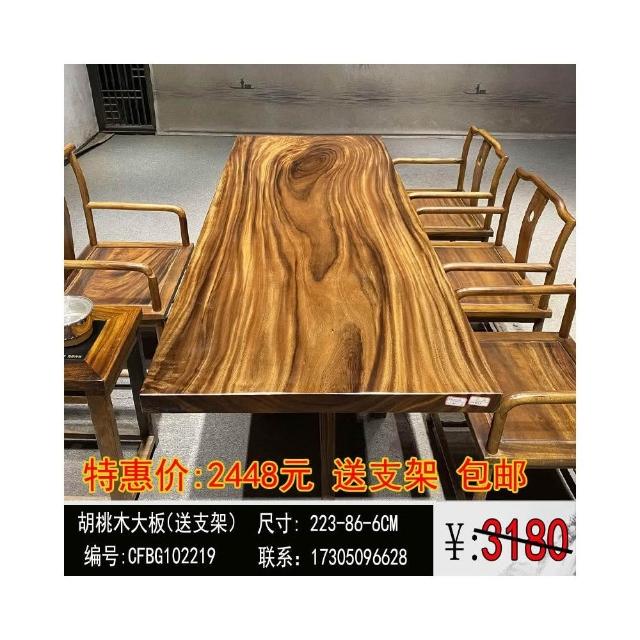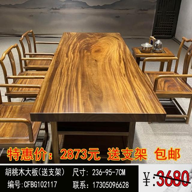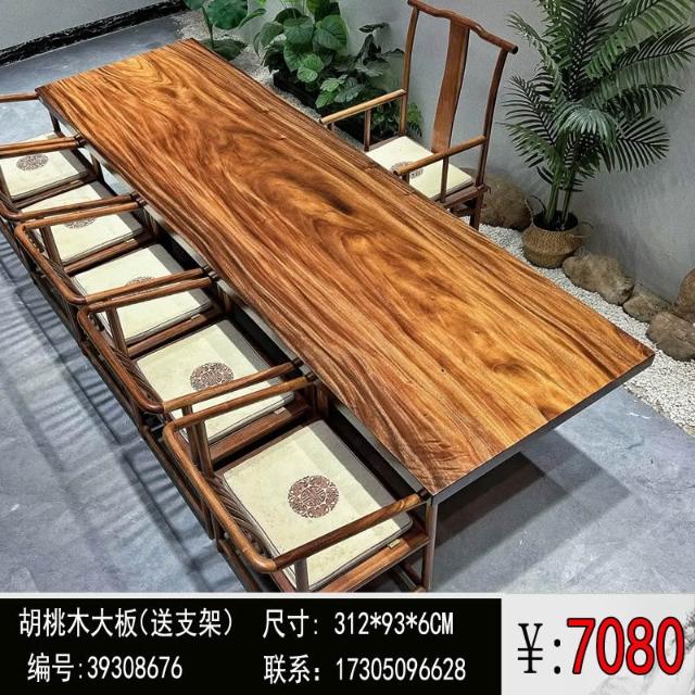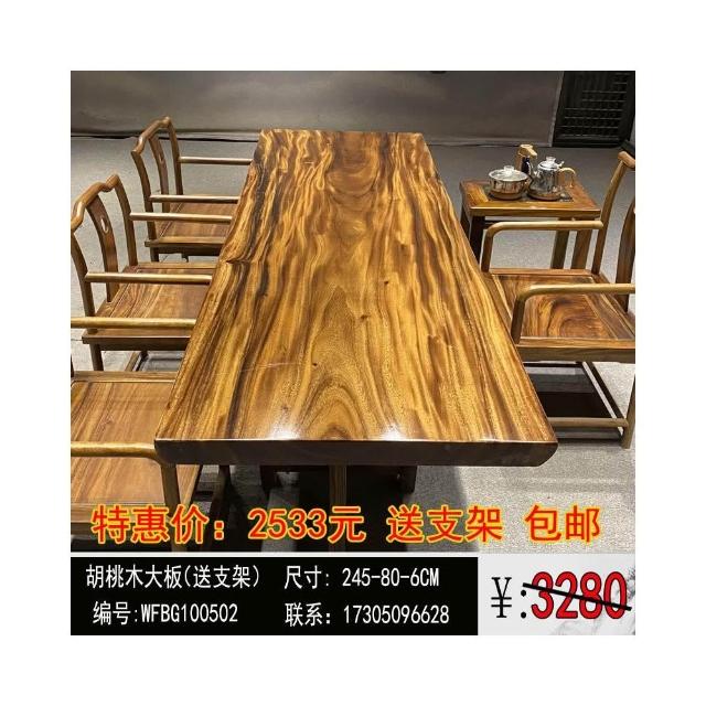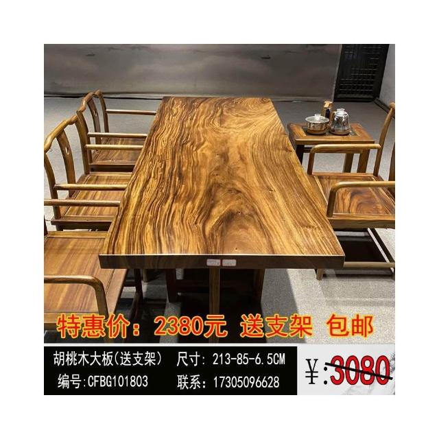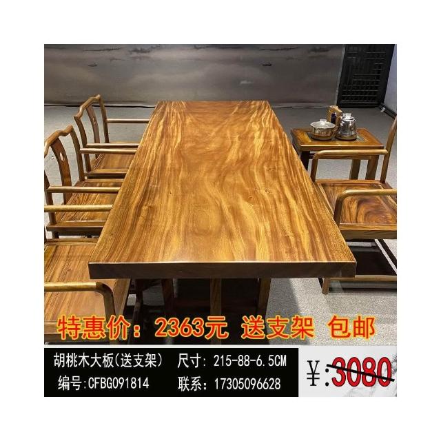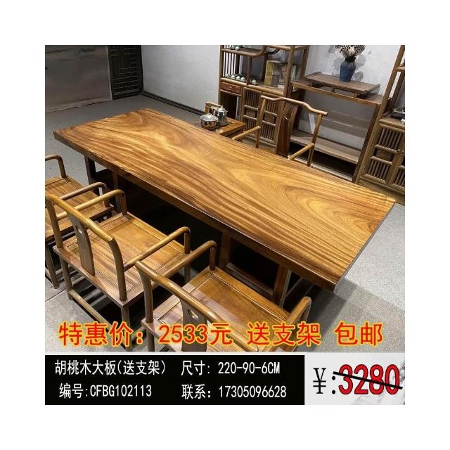 胡桃木大板茶桌實木家用餐桌原木辦公桌新中式桌椅組合簡約現代