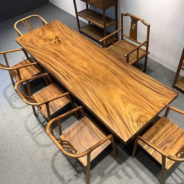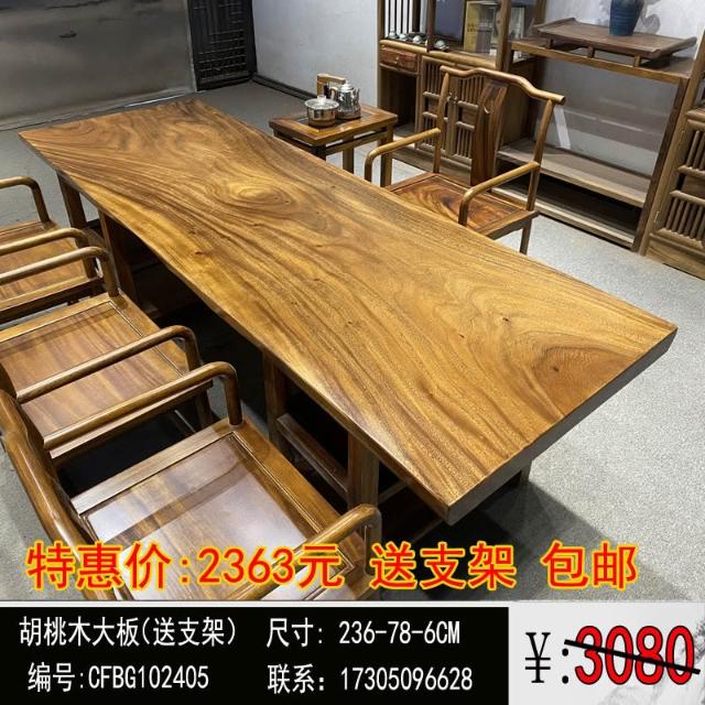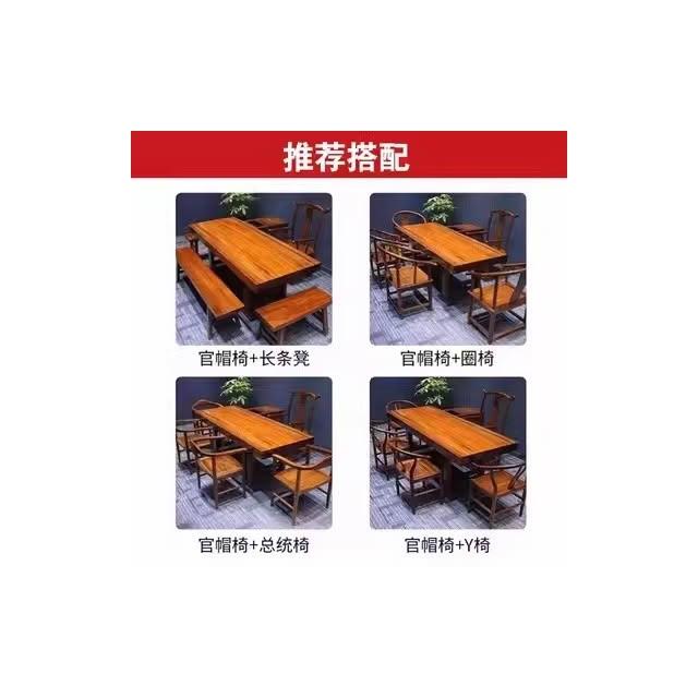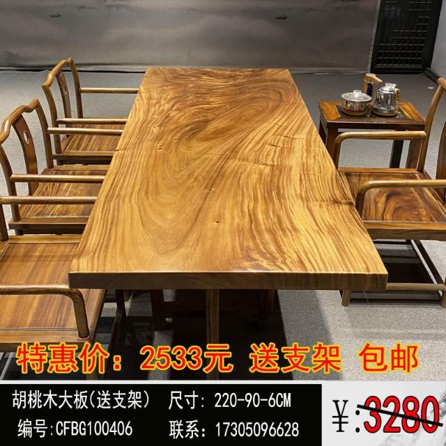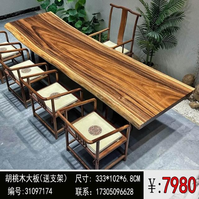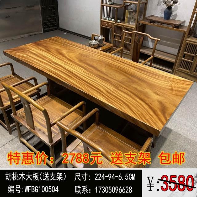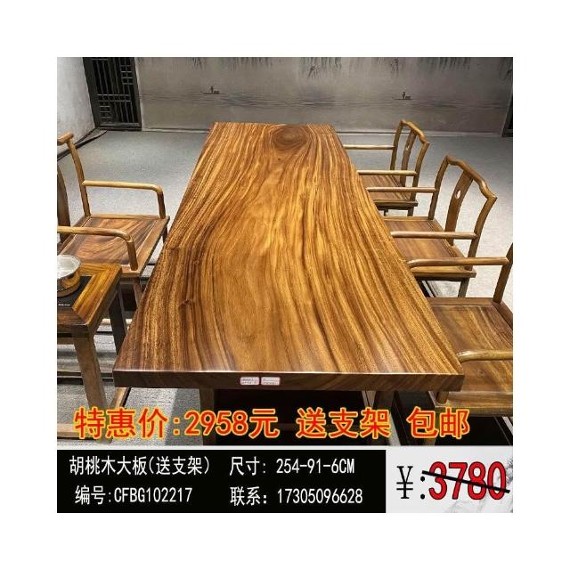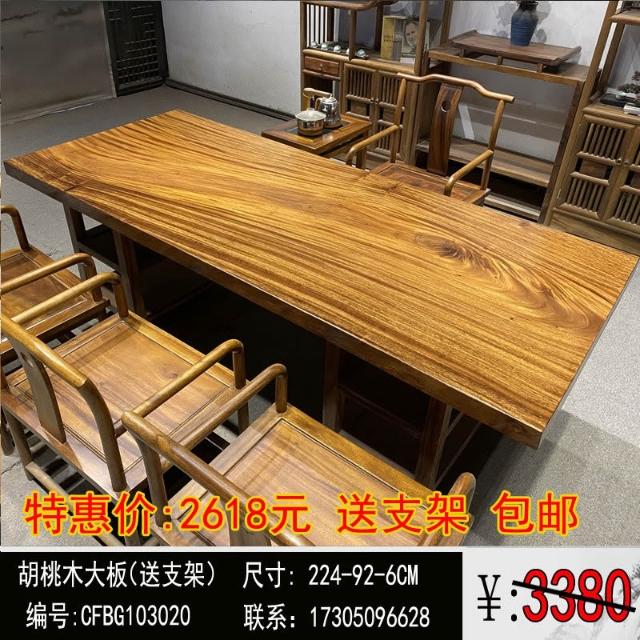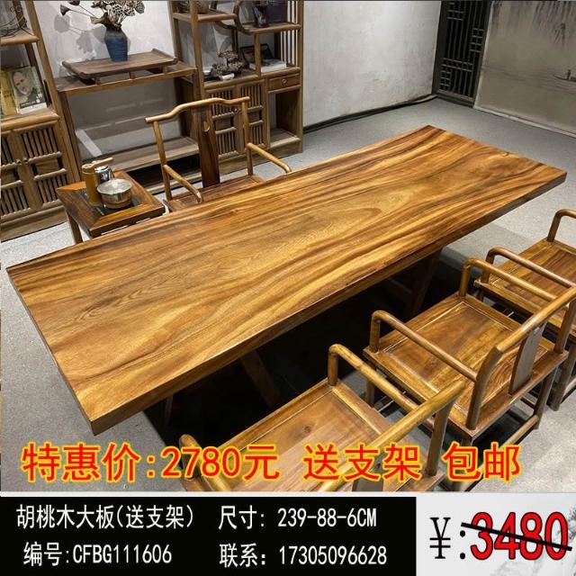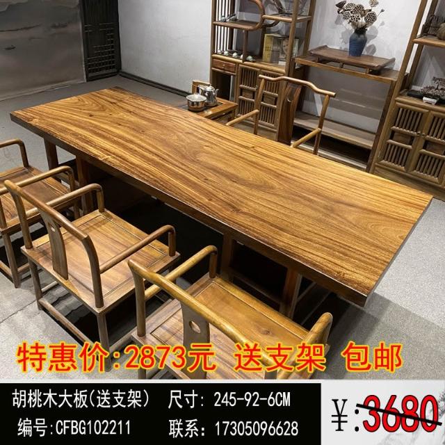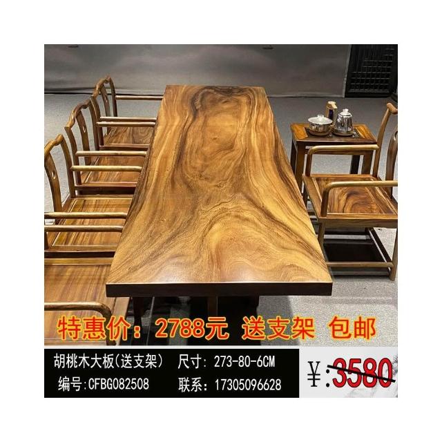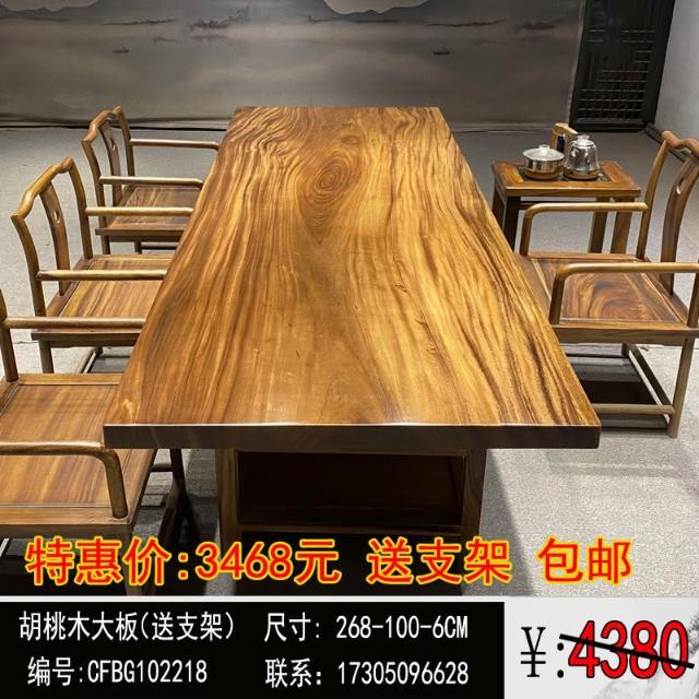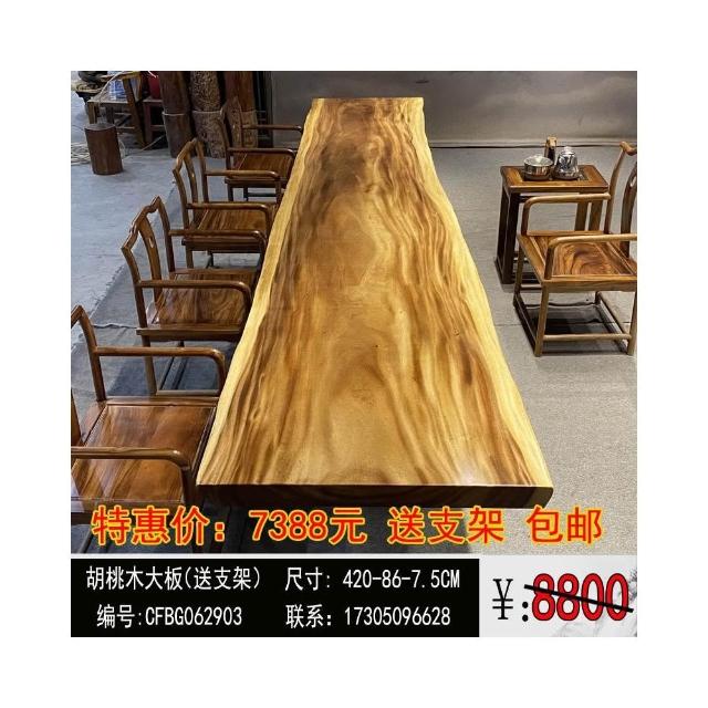 胡桃木大板茶桌實木家用餐桌原木辦公桌新中式桌椅組合簡約現代