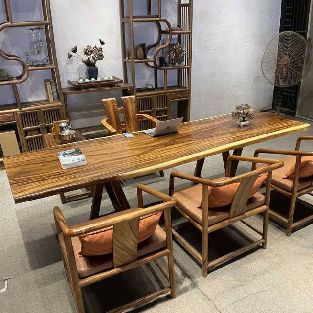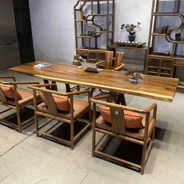 新中式實木大板茶桌椅組合原木泡茶台簡約現代家用辦公室功夫茶几