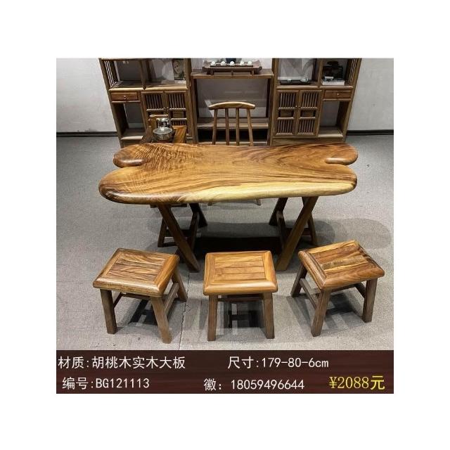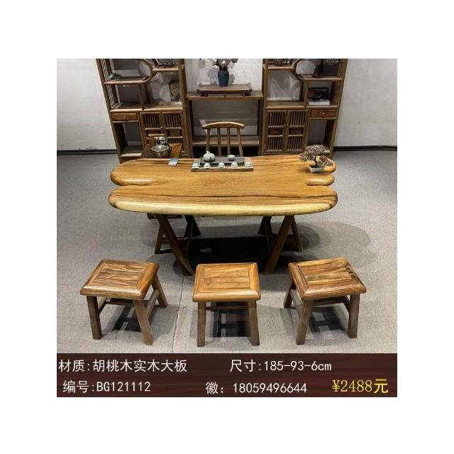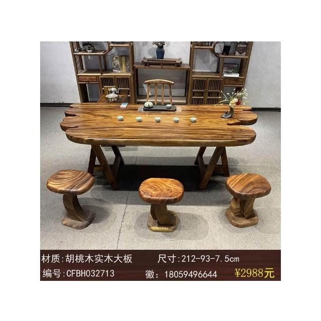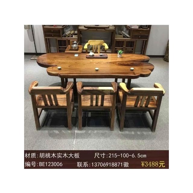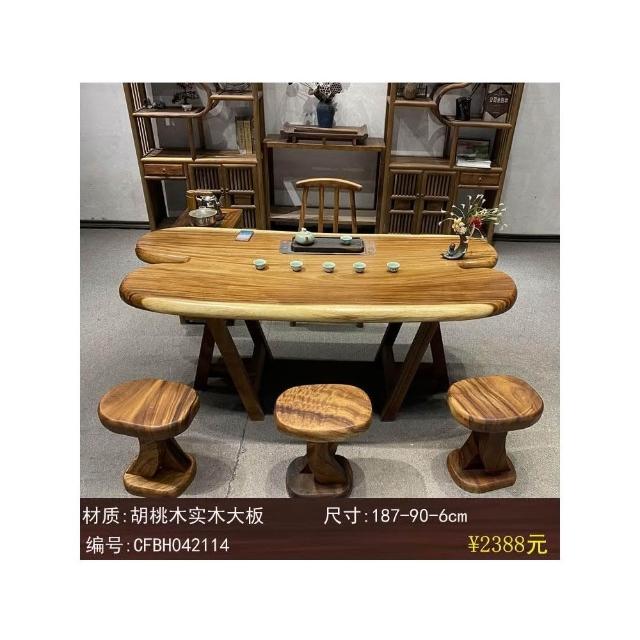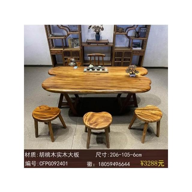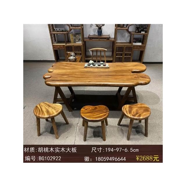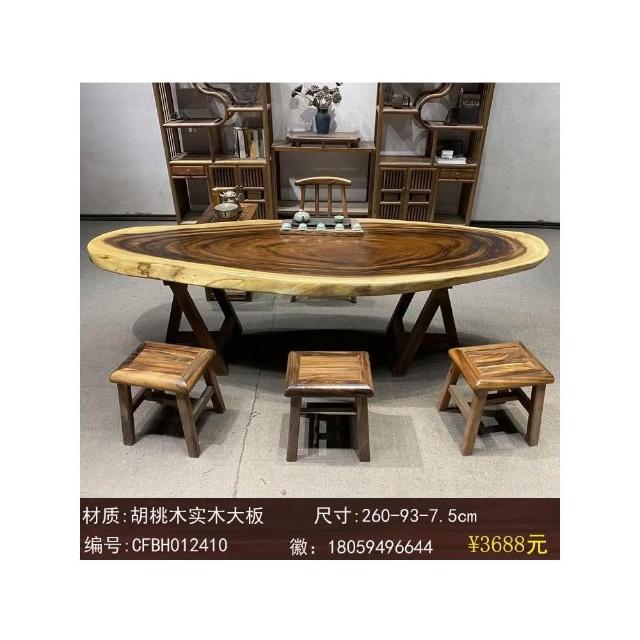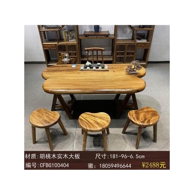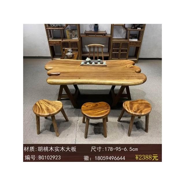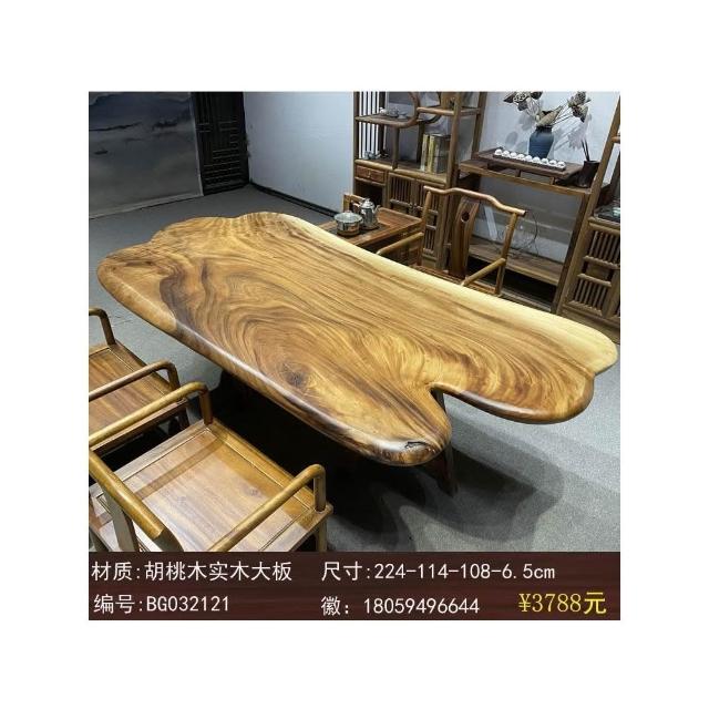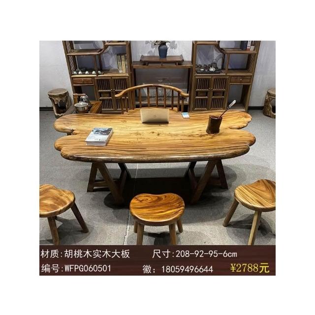 胡桃木實木大板茶桌原木整塊茶台桌椅組合新中式隨形桌異形泡茶桌