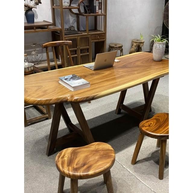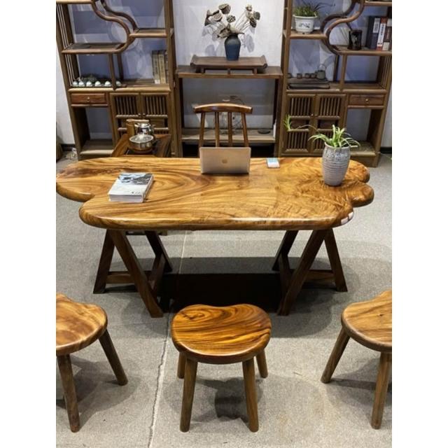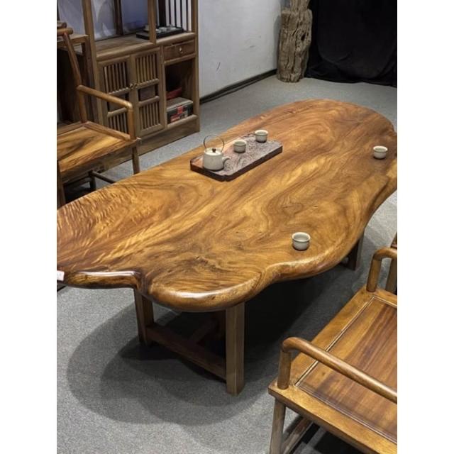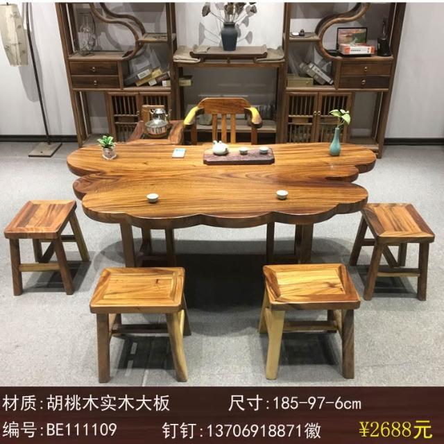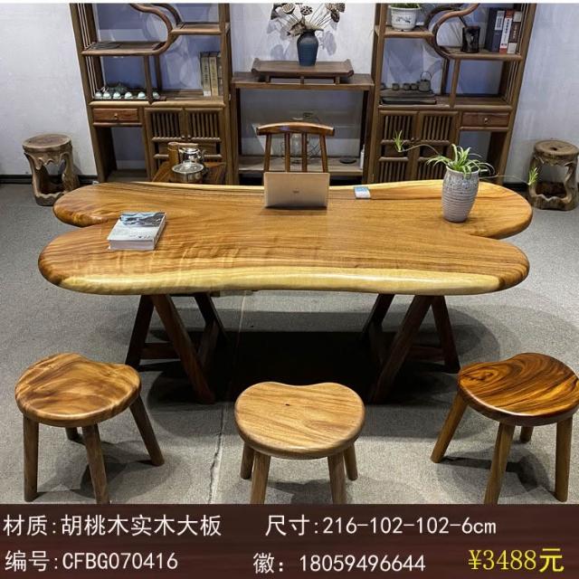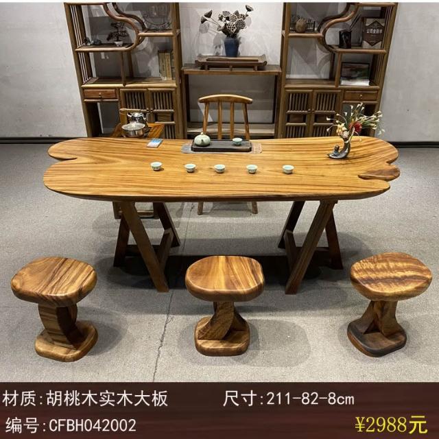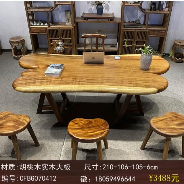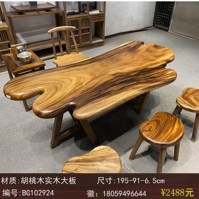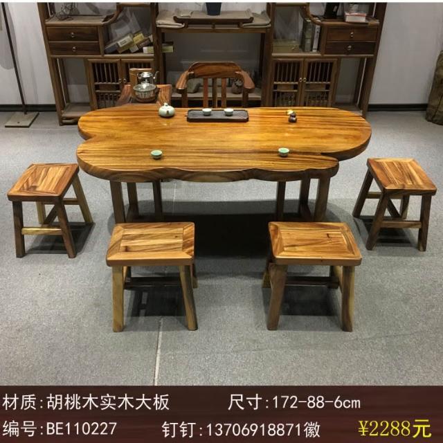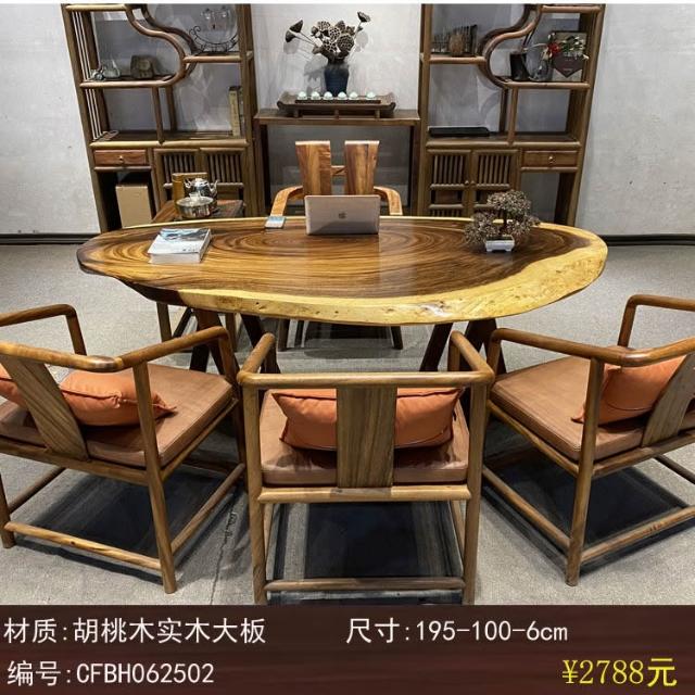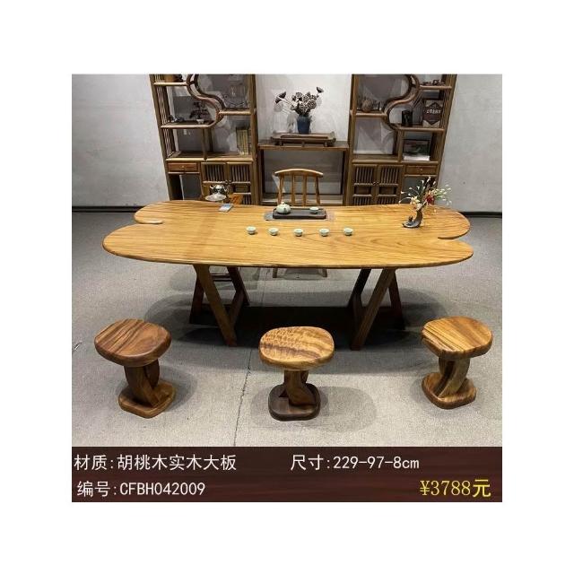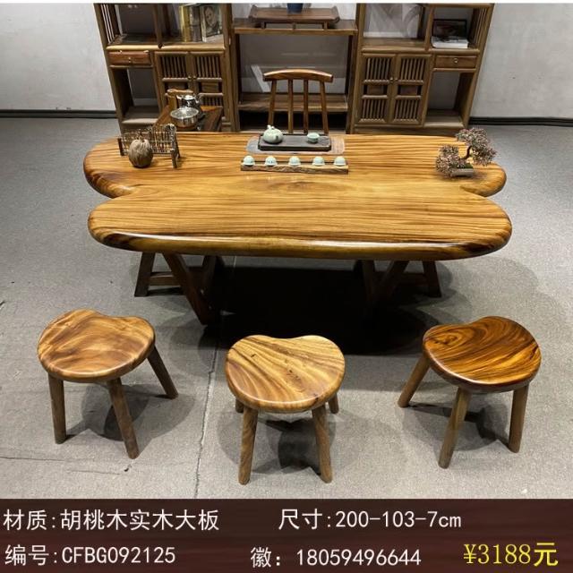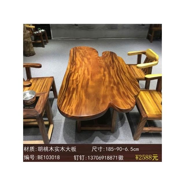 胡桃木實木大板茶桌原木整塊茶台桌椅組合新中式隨形桌異形泡茶桌