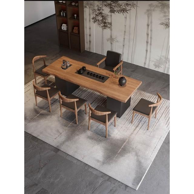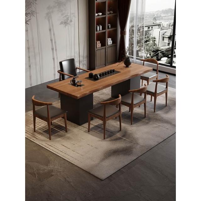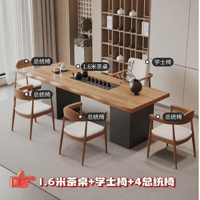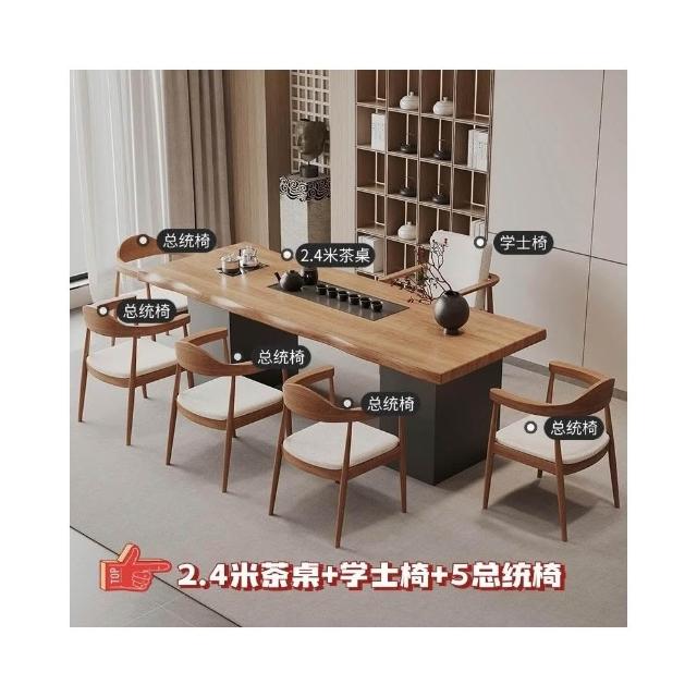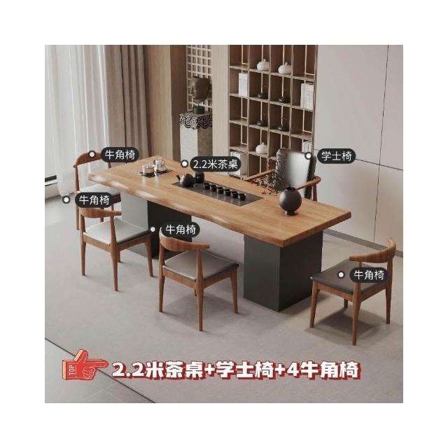 新中式全實木茶盤燒水壺一體泡茶桌椅組合大板茶台辦公室禪意茶桌