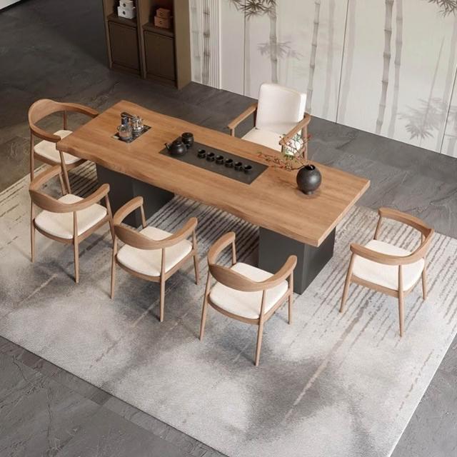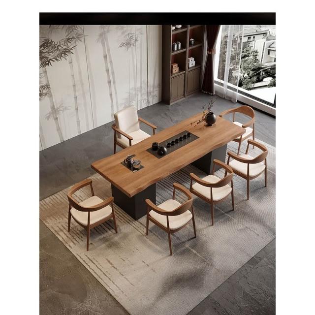 新中式全實木茶盤燒水壺一體泡茶桌椅組合大板茶台辦公室禪意茶桌