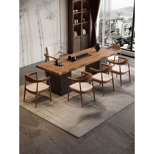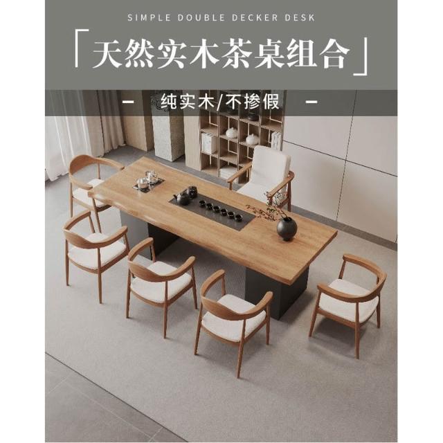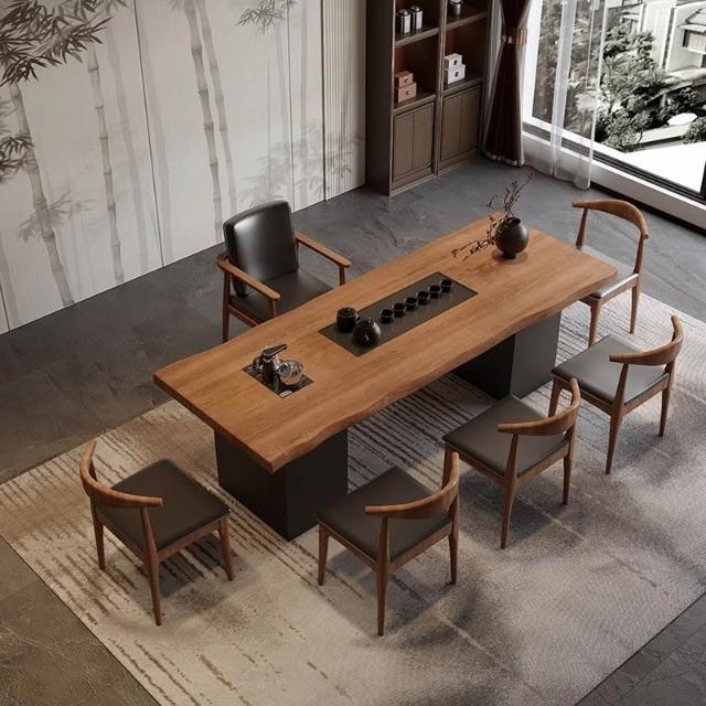 新中式全實木茶盤燒水壺一體泡茶桌椅組合大板茶台辦公室禪意茶桌