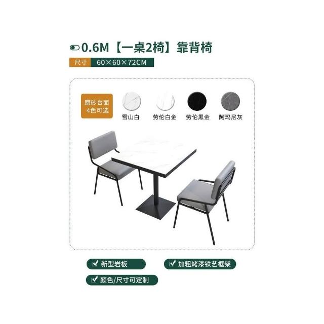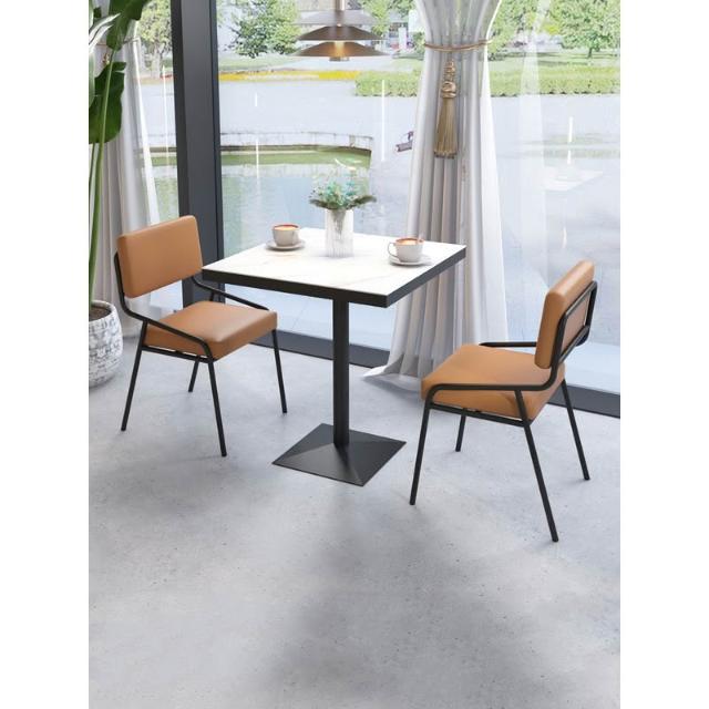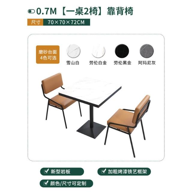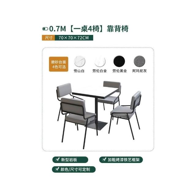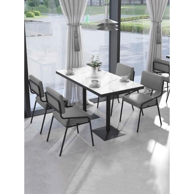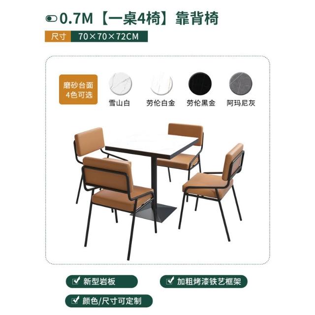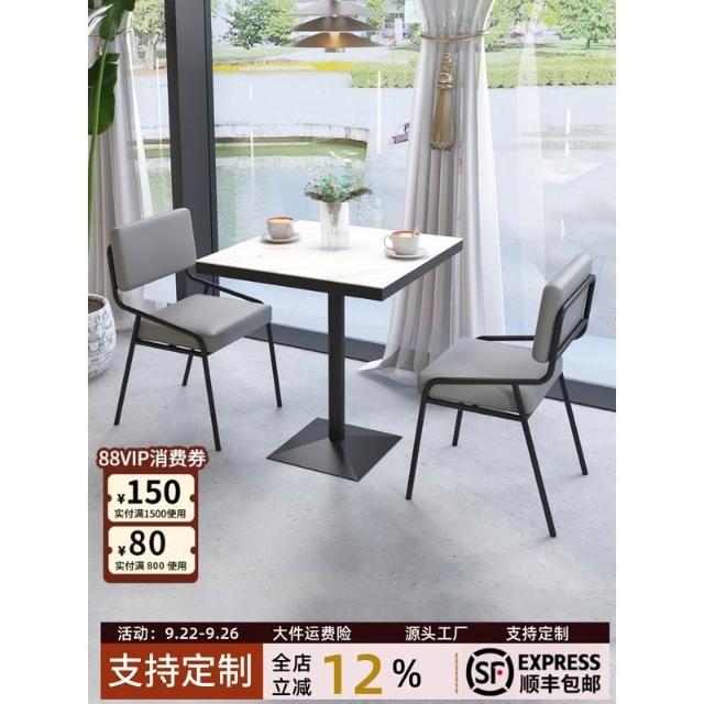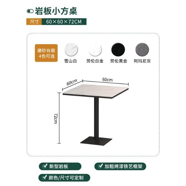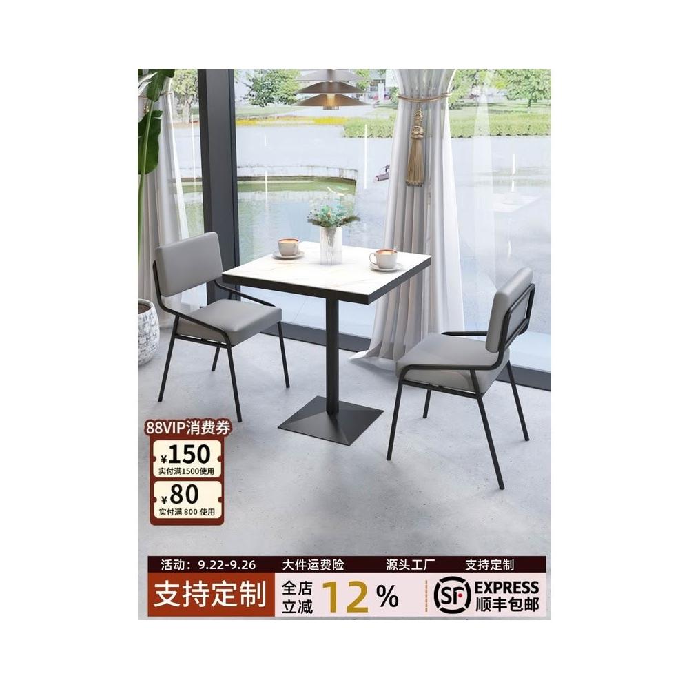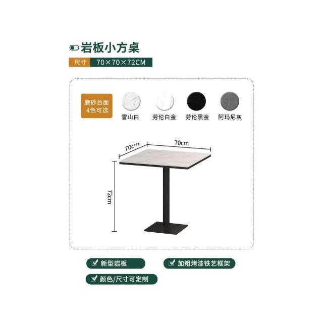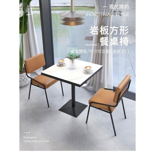 現代簡約正方形岩板餐桌接待洽談方桌子奶茶店咖啡廳桌椅組合1422