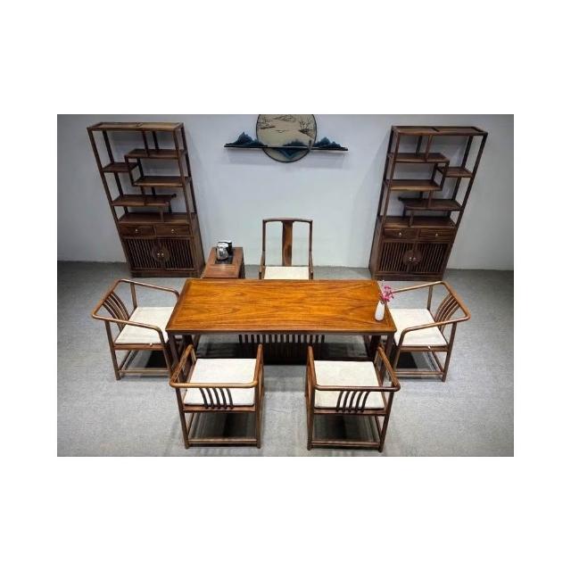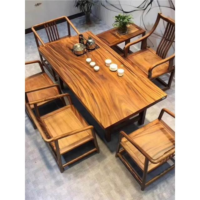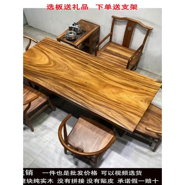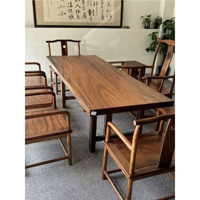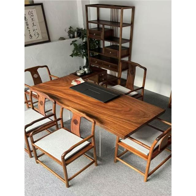 胡桃木實木大板茶桌茶台原木整板辦公桌書桌家用餐桌泡茶桌椅組合