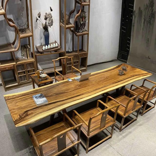 南美胡桃整木簡約現代辦公新中式泡茶吧檯會議組合大板桌