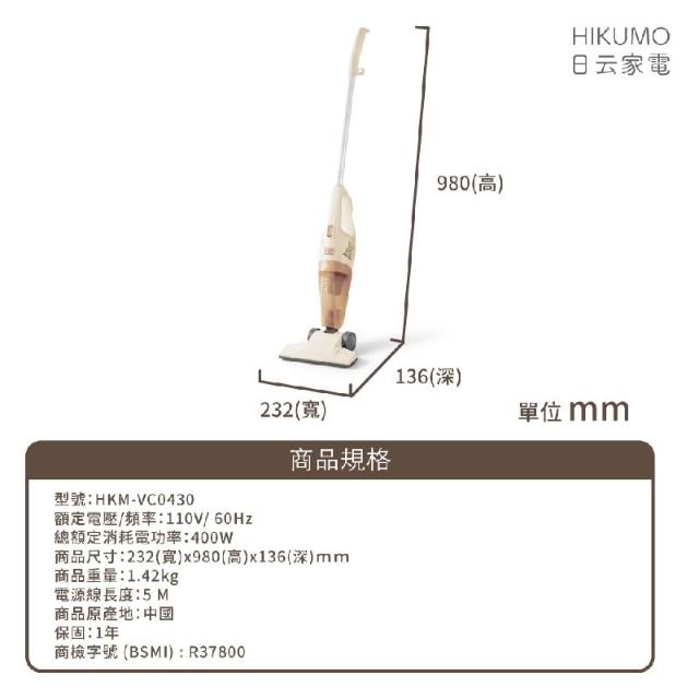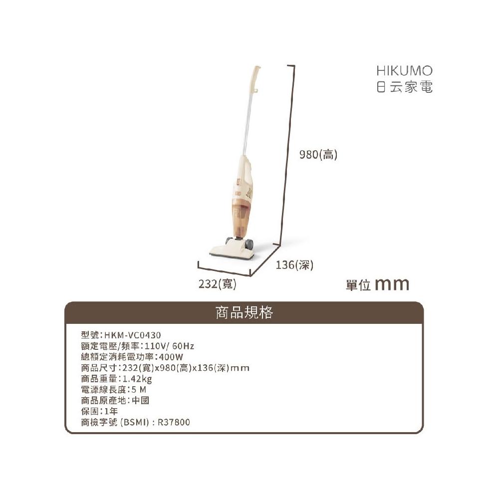 福利品~日云HIKUMO 氣旋直立式兩用吸塵器(HKM-VC0430)
