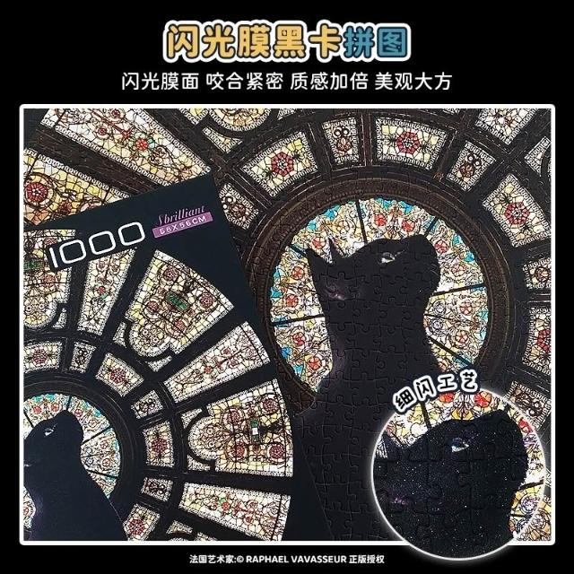 拼圖貓botop - 教堂貓 1000片 正版拼圖 閃光磨砂觸感黑卡 10506