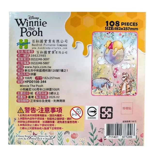 HUNDRED PICTURES 百耘圖【拼圖貓】百耘圖 - Winnie The Pooh小熊維尼100周年(2)拼圖108片 HPD0108-344