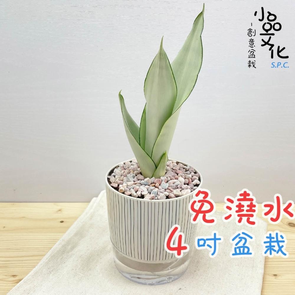 銀皇后虎尾蘭【現貨】4吋仿瓷免澆水盆栽 懶人盆栽 觀葉植物 室內植物 自動吸水 創意花盆 居家辦公盆花