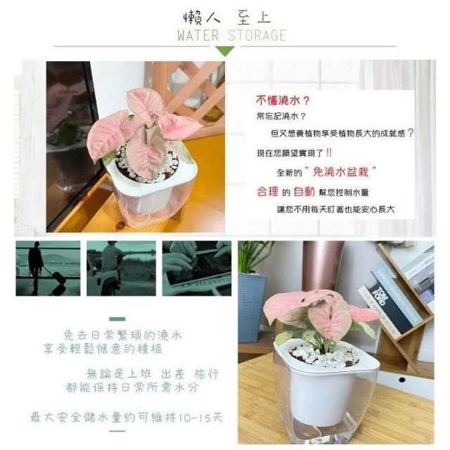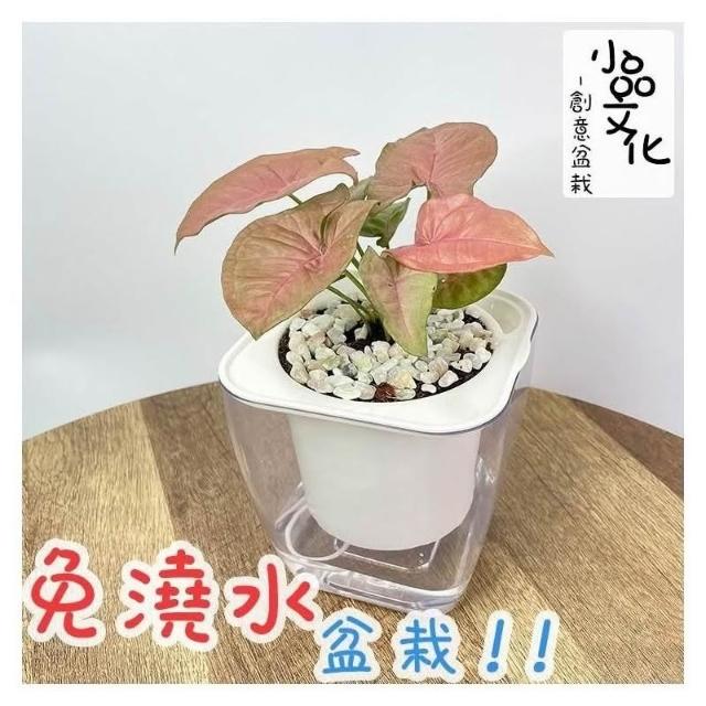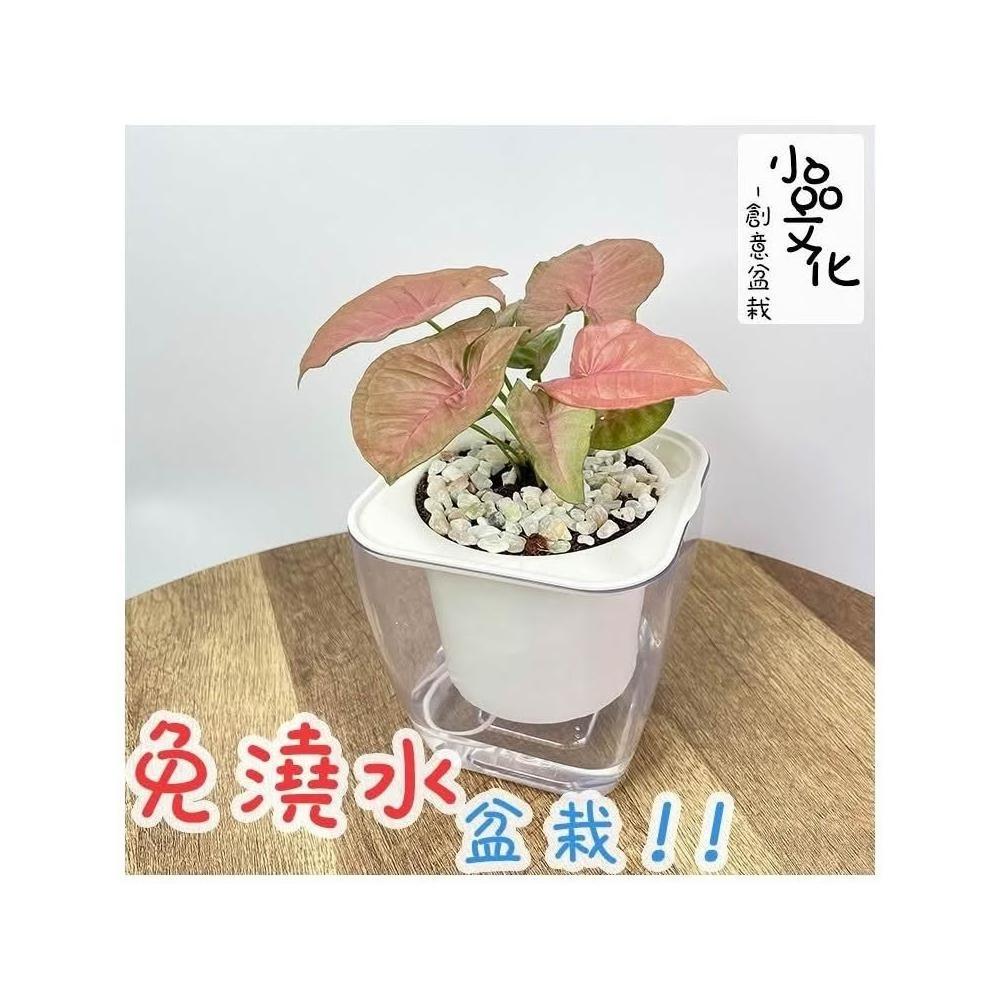 小品文化粉紅合果芋【現貨】4吋透明免澆水懶人盆栽 簡單好種植 觀葉植物 室內植物 自動吸水 創意花盆 居家