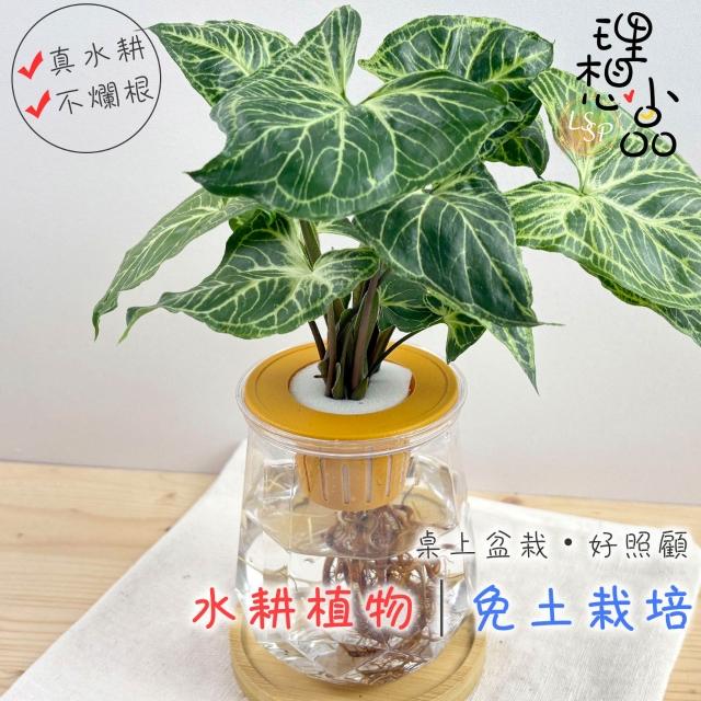 理想小品|蠟染合果芋|水耕盆栽|塑膠盆栽|無土種植|室內桌上植物 觀葉植物 水耕植物 送禮植物 桌上擺飾 塑膠鑽石瓶