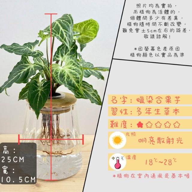 理想小品蠟染合果芋【現貨】水耕盆栽 玻璃花瓣圓錐瓶 無土種植 觀葉植物 室內植物 玻璃飾品 創意花盆 盆栽