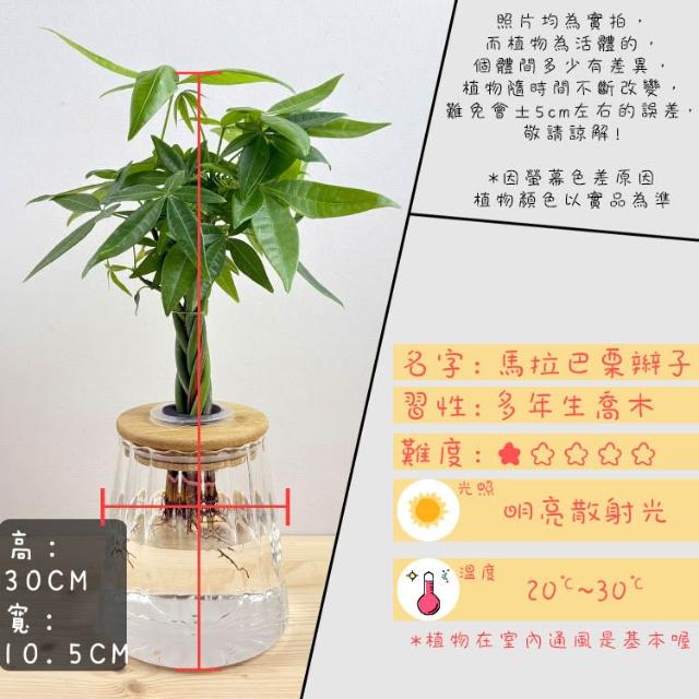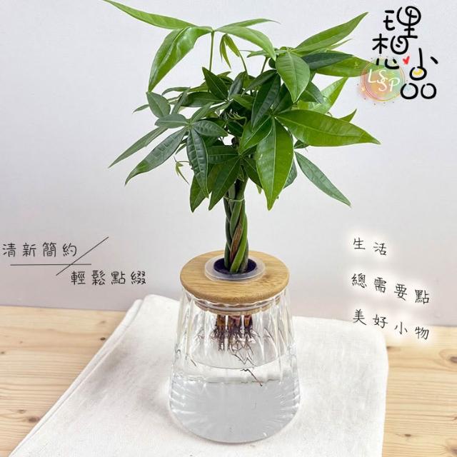 理想小品馬拉巴栗辮子【現貨】水耕盆栽 玻璃花瓣圓錐瓶 無土種植 觀葉植物 室內植物 玻璃飾品 創意花盆 盆栽