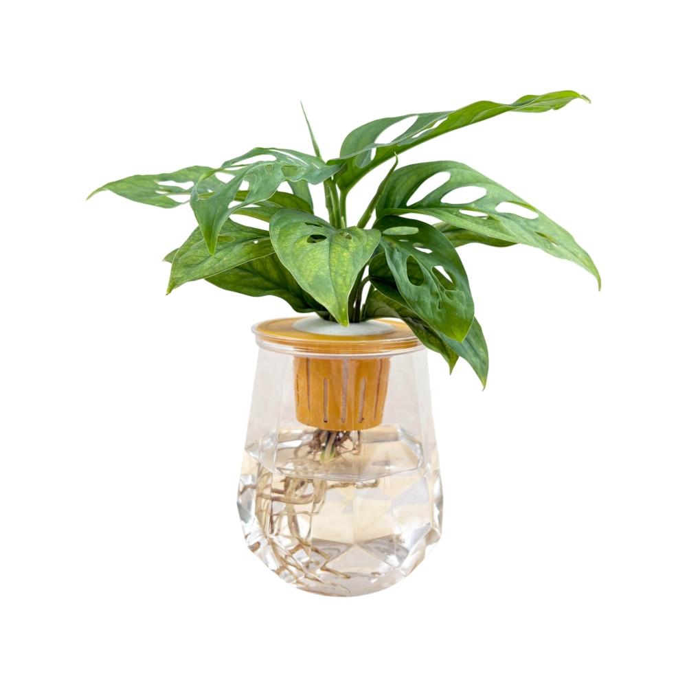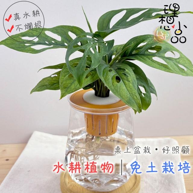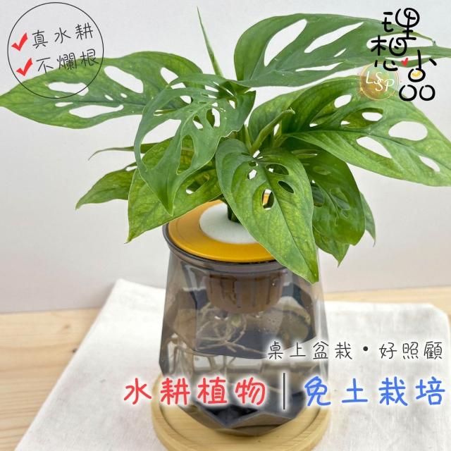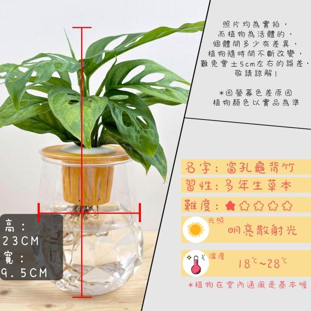 理想小品|窗孔龜背竹|水耕盆栽|塑膠盆栽|無土種植|室內桌上植物 觀葉植物 水耕植物 送禮植物 桌上擺飾 塑膠鑽石瓶