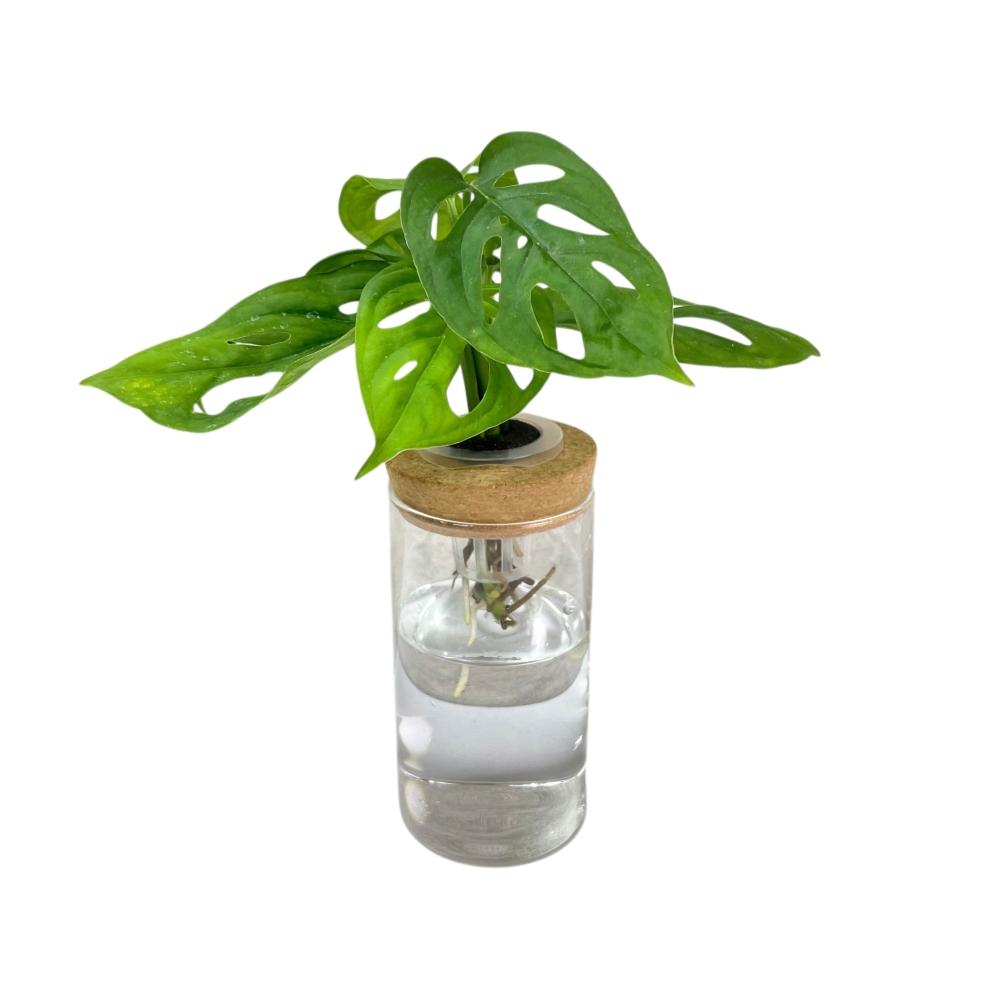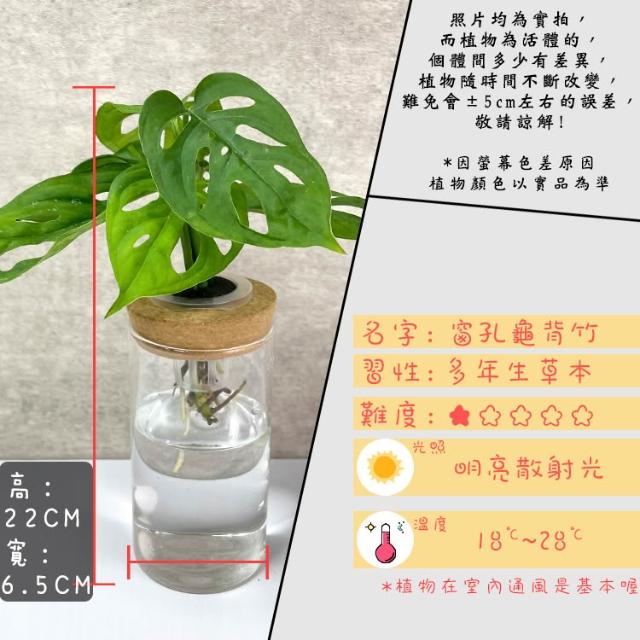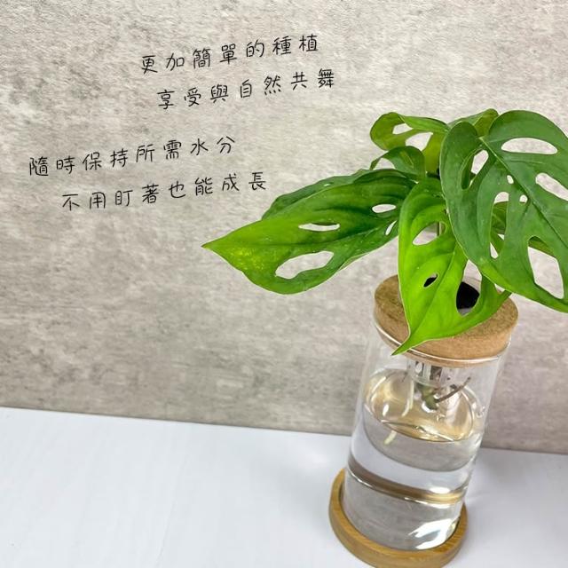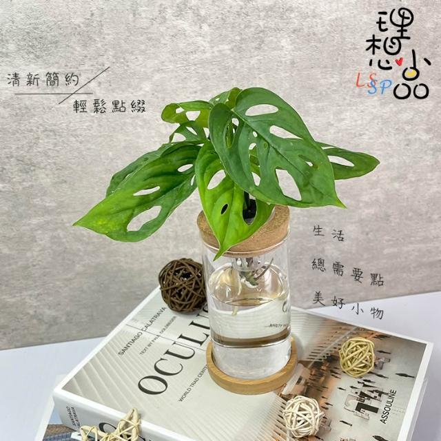 理想小品窗孔龜背竹【現貨】龜背芋 水耕盆栽 玻璃圓柱瓶 無土種植 觀葉植物 室內植物 玻璃水耕花瓶 水耕瓶 懶人花盆
