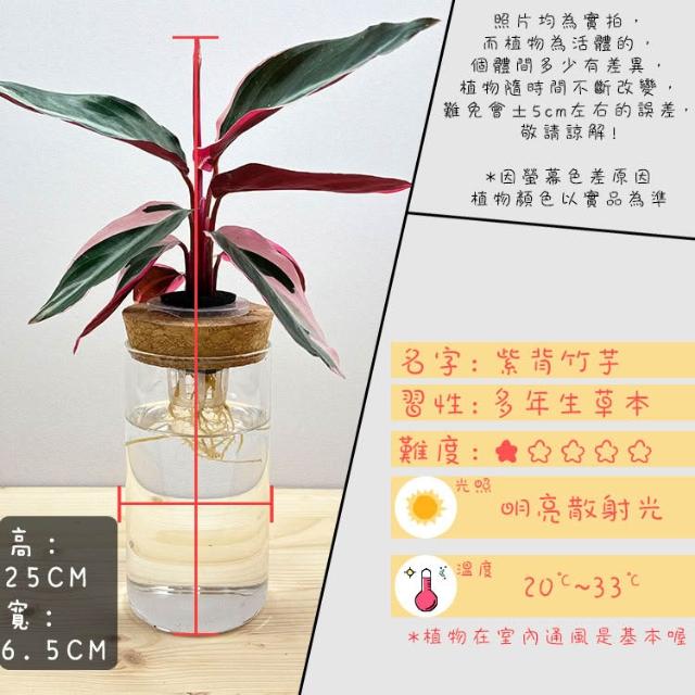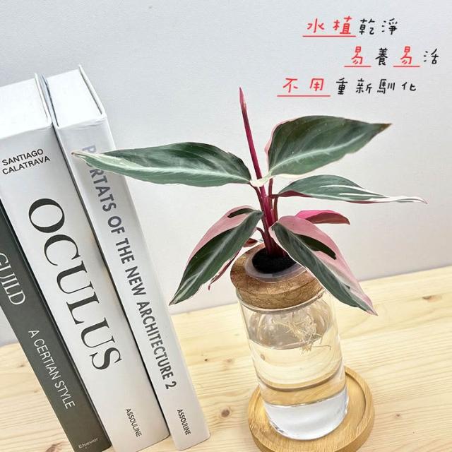 理想小品紫背竹芋【現貨】水耕盆栽 玻璃圓柱瓶 無土種植 簡單種植 觀葉植物 室內植物 飾品 創意花盆 盆栽