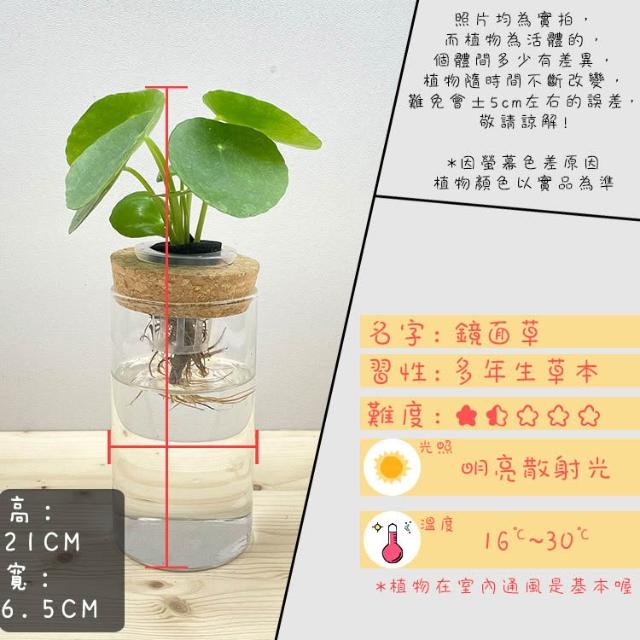 理想小品鏡面草【現貨】水耕盆栽 玻璃圓柱瓶 無土種植 簡單種植 觀葉植物 室內植物 玻璃飾品 創意花盆 盆栽