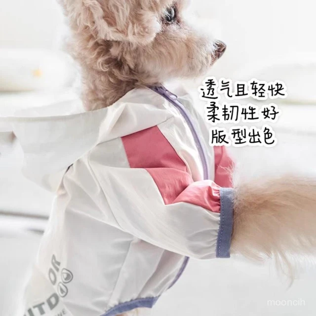 小T嚴選春夏薄款寵物狗狗晴雨兩用防水防曬服泰迪比熊雪納瑞戶外兩腳帽衫
