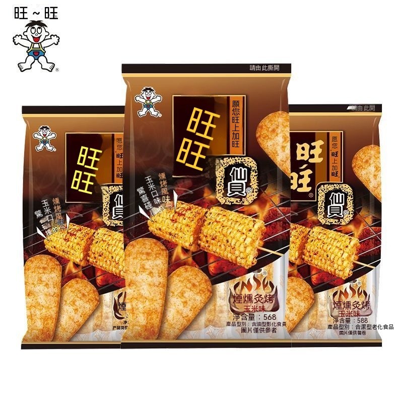 熱賣中【優先購】旺旺僊貝新品煙熏炙烤玉米味僊貝56g米果零食餅乾米餅獨立小包裝