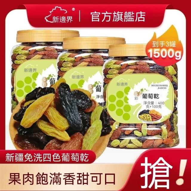 熱賣中 新邊界四色葡萄乾樹上黃多彩提子免洗卽食黑加侖零食500g*3