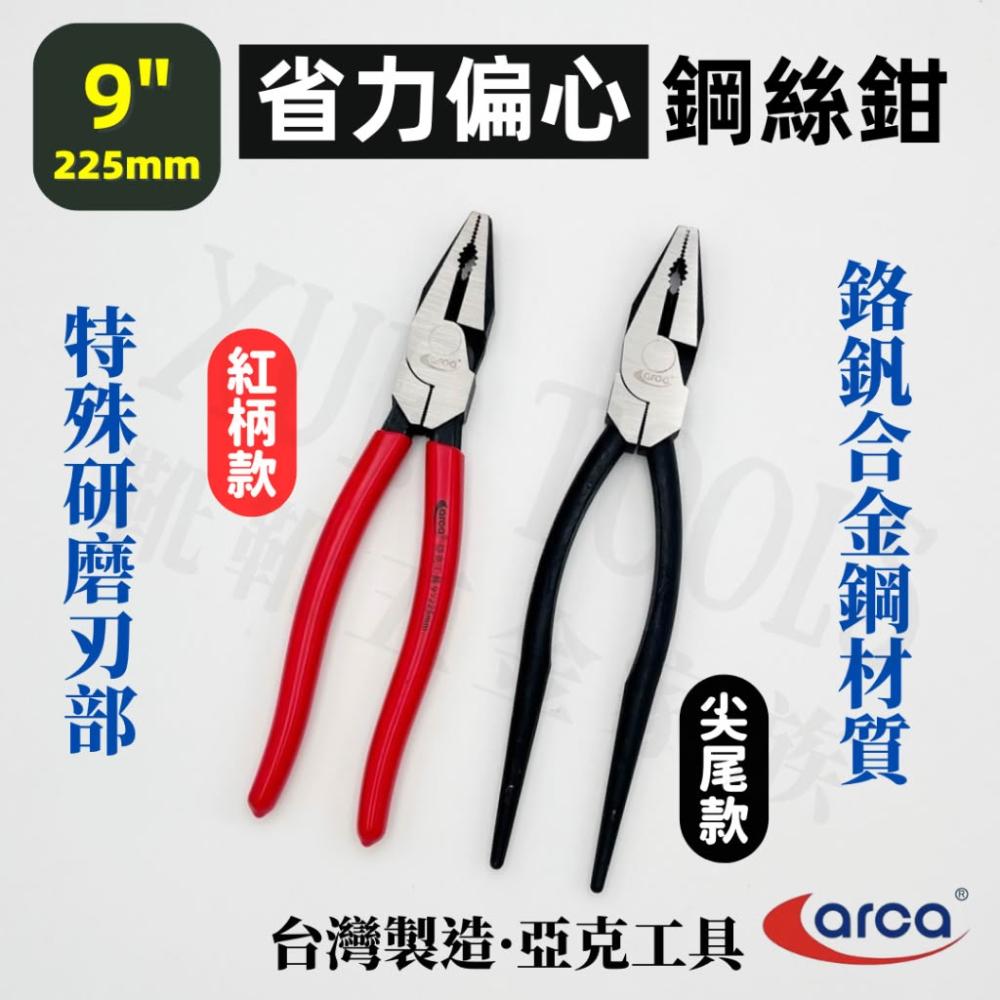 鋼絲鉗 老虎鉗 鉗子 尖尾 ARCA 亞克 鐵線剪 鋼索剪 鋼絲剪 水電 板模 建築 省力 9吋 台灣