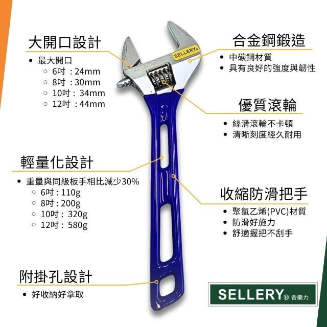 活動扳手 活動板手 大開口板手 大開口扳手 舍樂力 6吋 8吋 10吋 12吋 開口板手 開口扳手