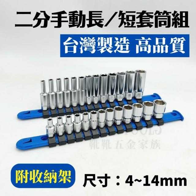 2分套筒組 二分套筒 2分套筒 長套筒 1/4" 套筒 六角套筒 手動套筒 4MM ~ 14MM 台灣
