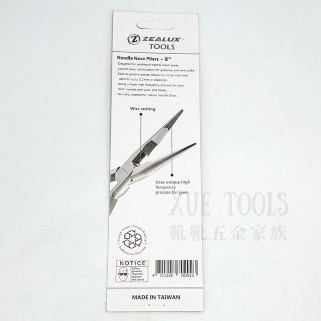 尖嘴鉗 尖口鉗 止滑尖嘴鉗 強力尖嘴鉗 鉗子 6吋 6" 8" 150mm 鉻鉬鋼 ZEALUX 台灣