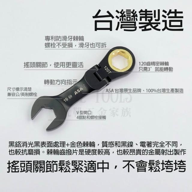 迷你棘輪 棘輪扳手 短棘輪扳手 ASA 棘輪板手 搖頭棘輪扳手 梅開板手 120齒 8~19mm 台灣