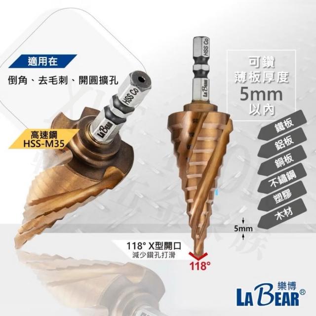 階梯鑽 鑽頭 階梯鑽頭 LaBear 寶塔鑽 寶塔鑽頭 階梯鑽尾 擴孔鑽 白鐵用 鑽尾 HSS 螺旋