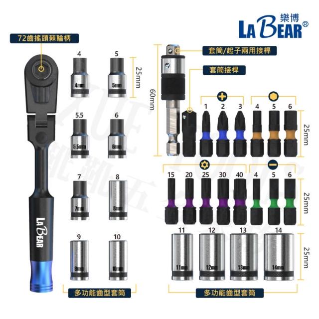 棘輪扳手 套筒工具組 起子頭 棘輪起子 套筒扳手 起子頭組 2分 LaBear 十字 六角 星型 一字