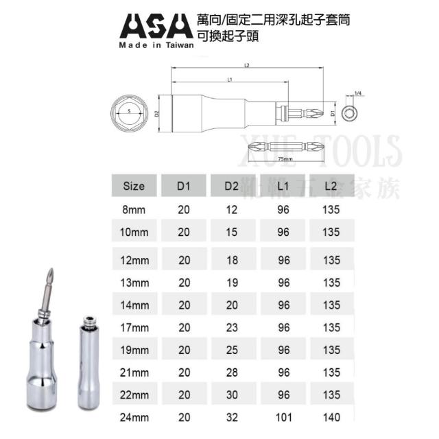 六角套筒 萬向套筒 深孔套筒 起子套筒 長套筒 套筒起子 ASA 六角柄套筒 起子頭套筒 深套筒 套筒