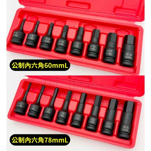 內六角套筒 星型套筒 六角套筒組 星型套筒組 星形套筒 英制 氣動 4分 1/2 凸頭 凸六角 台灣製