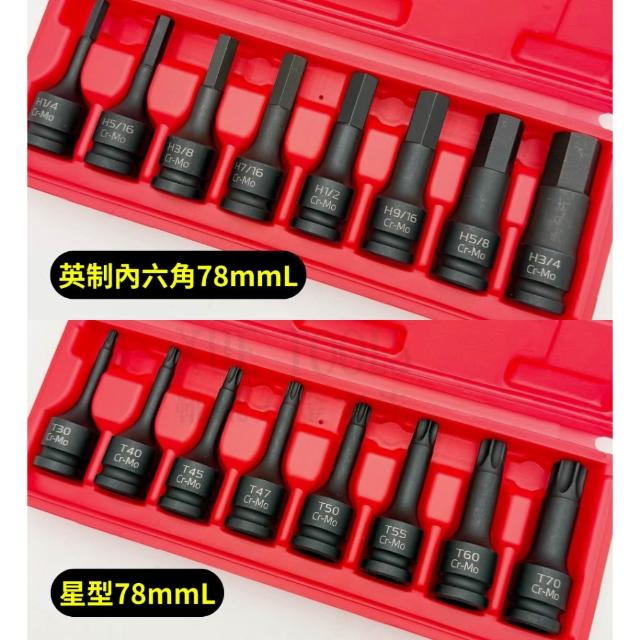 內六角套筒 星型套筒 六角套筒組 星型套筒組 星形套筒 英制 氣動 4分 1/2 凸頭 凸六角 台灣製