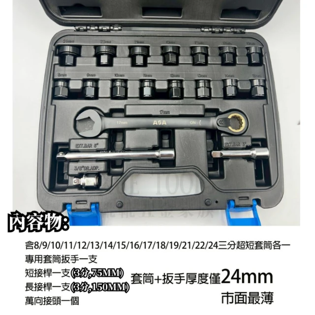 3分套筒組 棘輪扳手 棘輪板手 套筒扳手 3分套筒 ASA 超短套筒 72齒 工具組 套筒組 台灣製造
