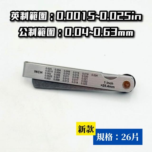厚薄規 間隙規 間隙片 塞尺 圓頭公英制厚薄規 0.04~0.63mm 0.0015~0.025in