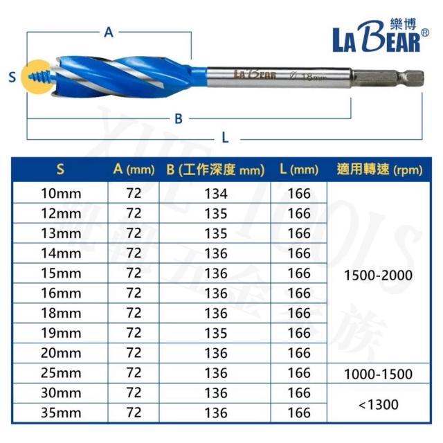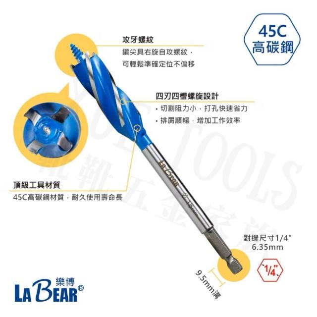 現貨熱賣24H支羅鑽 木工鑽頭 木工鑽尾 木工鑽 LaBear 10-35mm 六角柄 四刃 木工開孔器 鑽頭 鑽尾