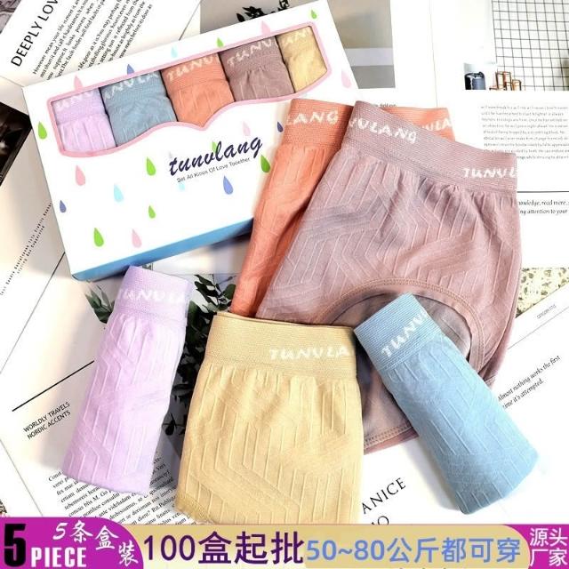 盒裝無縫女士內褲女生中腰艾草棉襠字母無痕少女式三角內褲褲批發