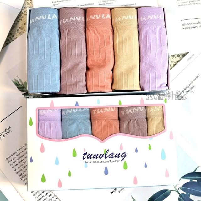 盒裝無縫女士內褲女生中腰艾草棉襠字母無痕少女式三角內褲褲批發
