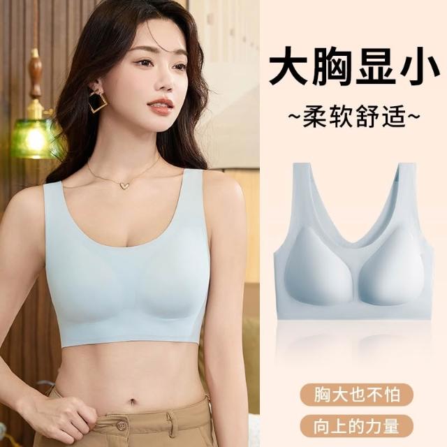 無痕內衣女固定杯聚攏大胸顯小防下垂收副乳胸罩無鋼圈背心式睡眠