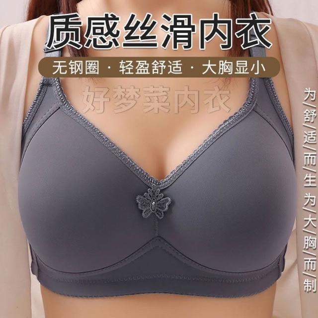 "高品質內衣" 大內內女士內衣薄款無鋼圈D杯大胸罩調整型超大碼光面胸罩