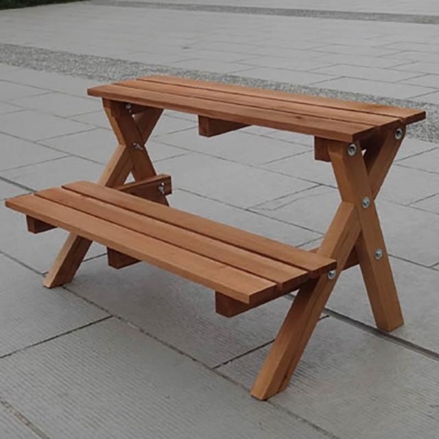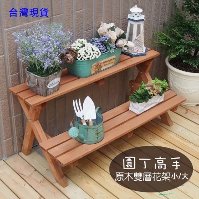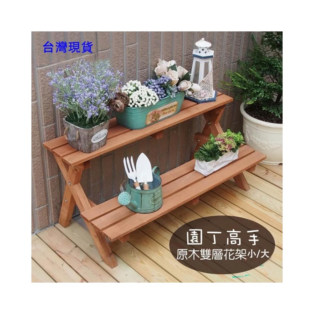 雙層多用途花架實木雙層架花盆架置物架多肉陳列架花園園藝用品