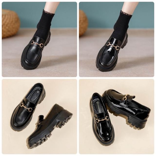 厚底樂福鞋 學院風 台灣現貨 黑色 亮皮 休閒鞋 氣墊 金屬扣