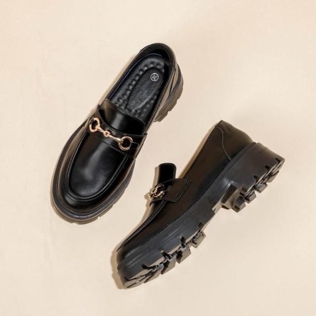 厚底樂福鞋 學院風 台灣現貨 黑色 亮皮 休閒鞋 氣墊 金屬扣