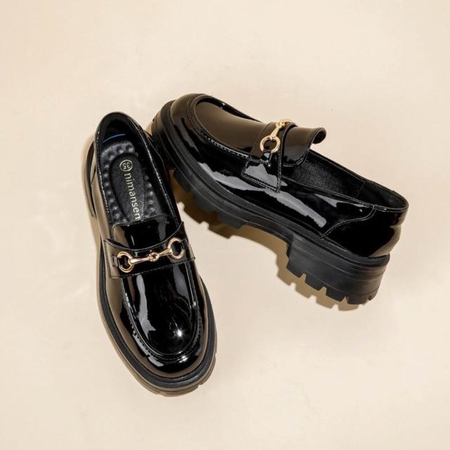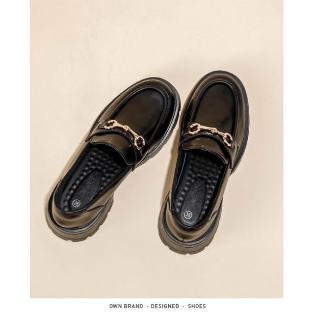 厚底樂福鞋 學院風 台灣現貨 黑色 亮皮 休閒鞋 氣墊 金屬扣