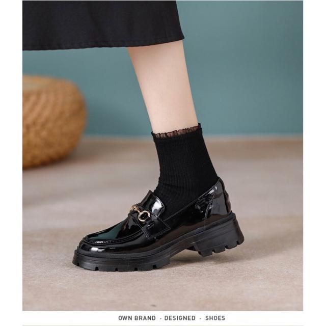 厚底樂福鞋 學院風 台灣現貨 黑色 亮皮 休閒鞋 氣墊 金屬扣