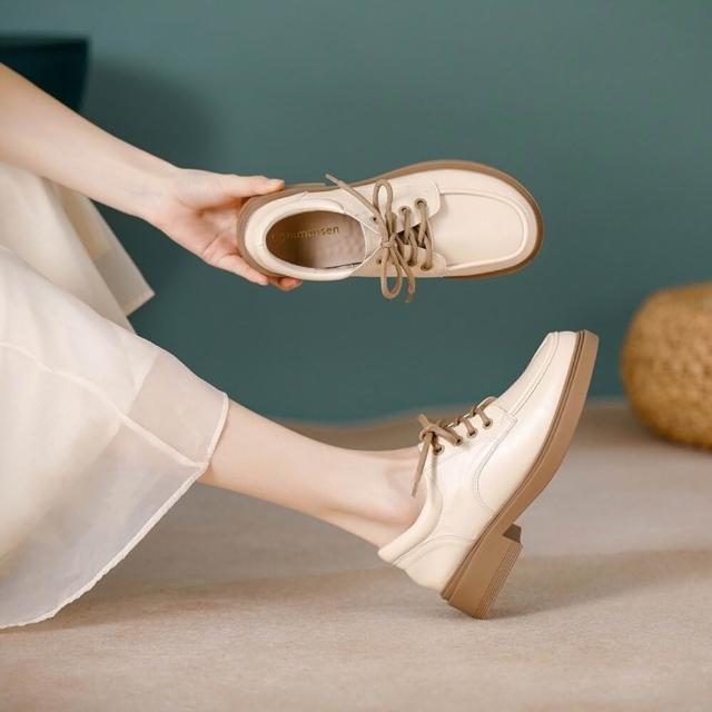 厚底鞋 黑色 鞋帶學院風 全黑皮面 霧皮米駝色 亮皮 高台 5.5公分 休閒鞋 福樂鞋